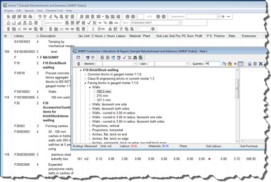 - Vector includes our comprehensive detailed Building Estimating Library with over 10,000 fully resourced and costed items covering Major Works, Minor Works and Alterations and Repairs including small-scale repair spot items.