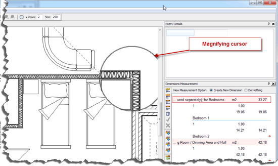 Vector gives you everything you need to take-off from CAD drawings including take-off from DWG, DFX, DGN or PDF drawing files. No additional software is required. Measurement is quick and easy with automatic calculation of lengths, areas and angles. Complex areas can be measured very quickly and accurately. Area and perimeter of polyline shapes are instantly accessible. Complex areas can also be traced very quickly using either ‘snap to’, and the magnifying cursor which enables you to see right into the corners. Multiple separate lengths or areas can be grouped for measurement purposes. The take-off is documented in the bill take-off and on the drawing. Complex drawings can be simplified using the layers controls to show / hide detail, additional measurement layers can be created to separate different parts of the take-off. Print the drawing marked up with your take-off detail direct to the printer, or export as a PDF to show others how you did your measure. Because you are using a single integrated program for Measuring, Bill Production and Estimating the whole process is streamlined and simplified. |
